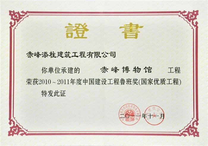 鲁班奖证书