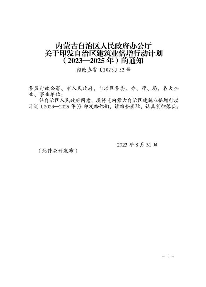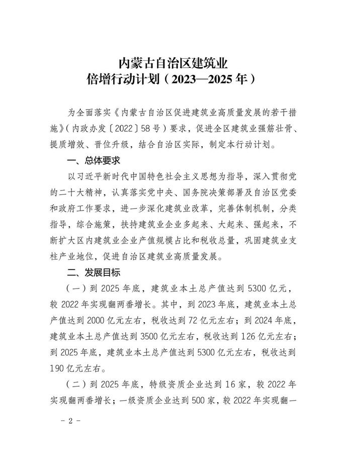 内蒙古自治区建筑业倍增行动计划(2023—2025年)