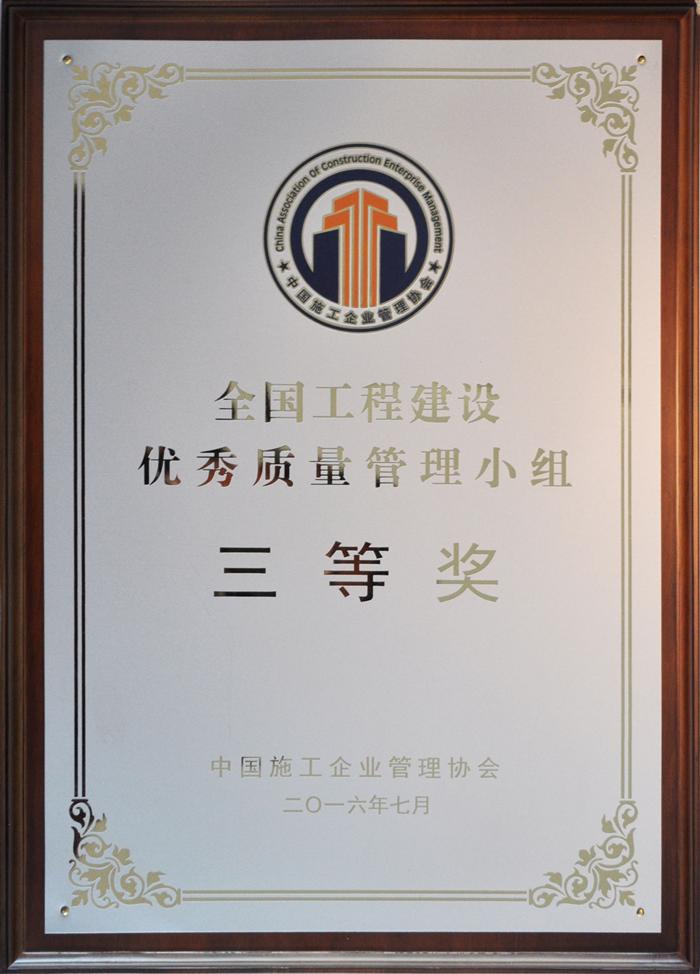 2016年度全国工程建设优秀质量管理小组三等奖