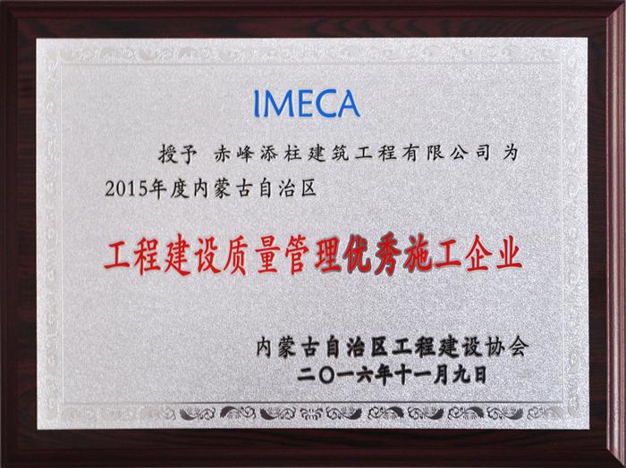 2015年度内蒙古自治区工程建设质量管理优秀施工企业